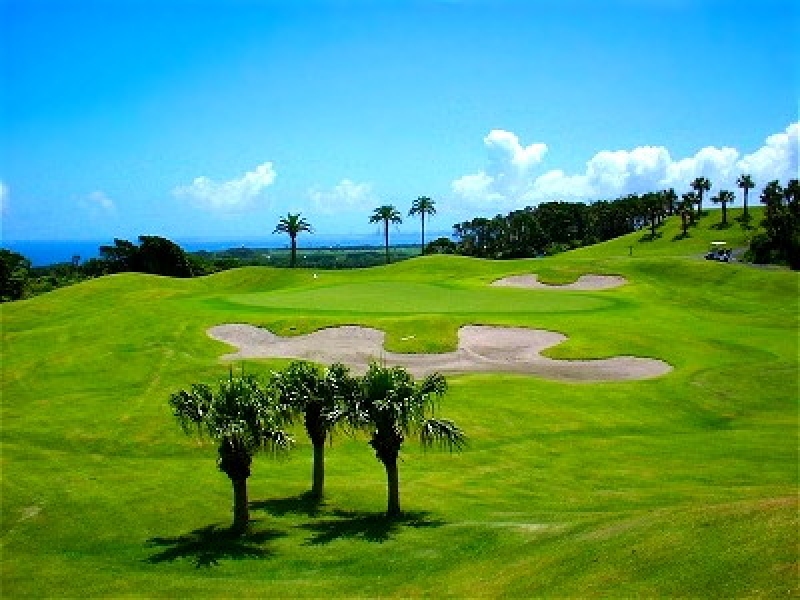 丘陵コース。適度な広さのフェアウェイで特に落下地点が厳しいわけではないがインの方はドッグレッグ系が多く、左右どちらかへ正確に打っていく必要がある。攻略のポイントは2番・7番・18番の池とサンド66個、グラス50個のバンカー。特にグラスバンカーはルートに絡むことが多く、芝の刈り方次第でかなり難しいものになる。グリーンはベント芝。約半分が2段グリーンのためピン位置を確認してから攻めたい。ビギナー・上級者それぞれが楽しめるリゾートながら本格コース。2004年まで24年連続『カシオワールドオープン』の開催地であった『いぶすきゴルフクラブ』と系列のゴルフ場。日本最南端の本格的ベントワングリーンコースでもある。クラブハウスにはホテルグレードの宿泊施設も併設されていてとても便利です。