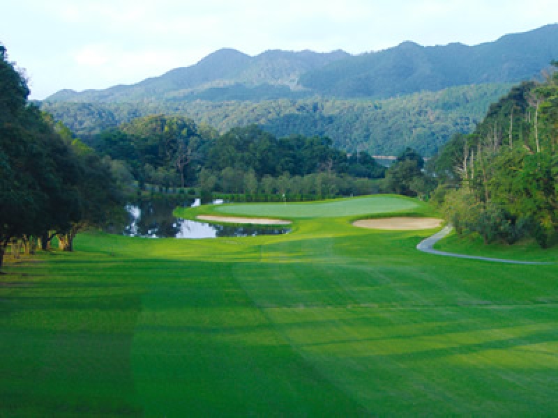 第53回関西プロゴルフ選手権開催の丘陵コース。豊田湖に面した丘陵地のレイクサイドコースでコースからの景色が美しい。アウトはフラットで雄大なホールが多い。3・4番のミドルホールは距離が長いのである程度の飛距離が出ないと辛い。5番ショートは右サイドが滝でグリーン奥がすぐ豊田湖と、コース随一の景観。正確なアイアンショットを打っておきたい。インは多少起伏がある。15番はアメリカンスタイルのムードを持つ名物ホールで距離のある打ち下ろし。